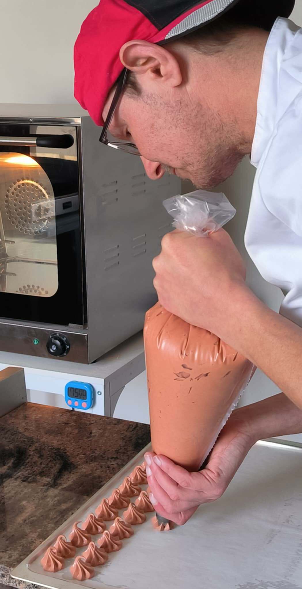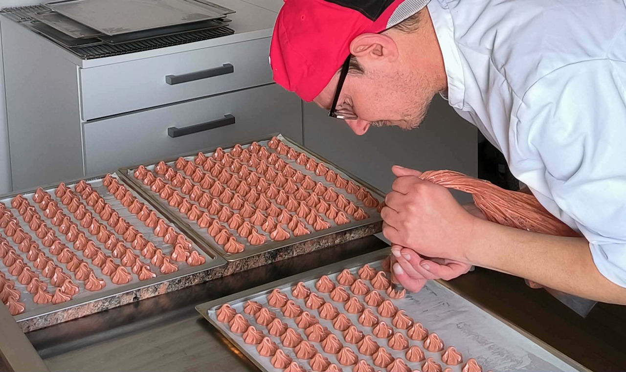 3. Les meringues sont ensuite pochées une à une avant d’être mises au four.