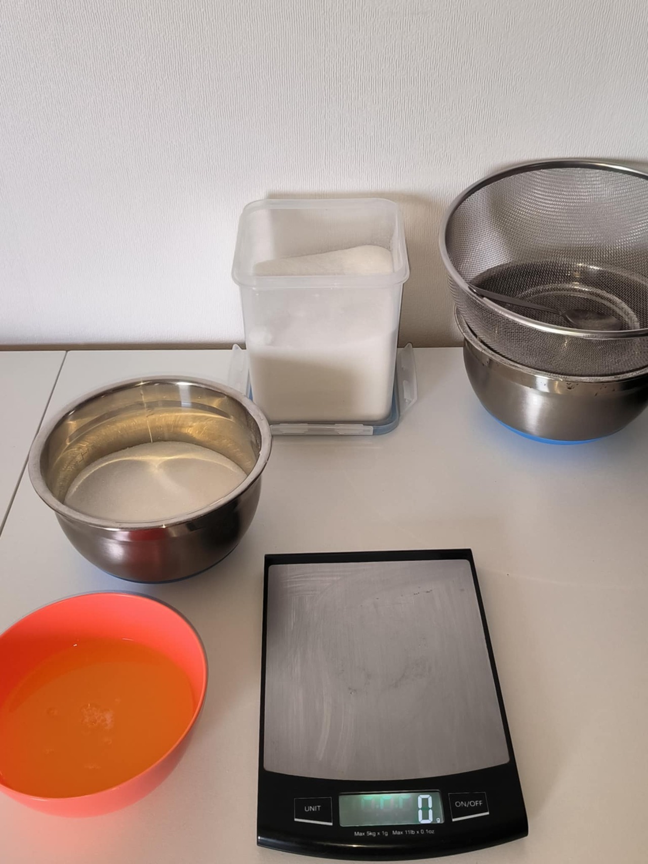 1. La recette est réalisée avec attention : pesée précise des ingrédients.